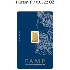 A 1 gram minted gold bar from the LBMA-approved manufacturer C. Hafner, presented in a credit card sized case with a unique serial number on both the bar and packaging.