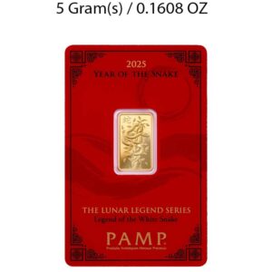 PAMP are a Swiss refiner approved by the London Bullion Market Association, and have been on this list of trusted refiners since 1987. PAMP 5g gold lunar bars are 24-carat (999 fineness) and feature a new design each year.