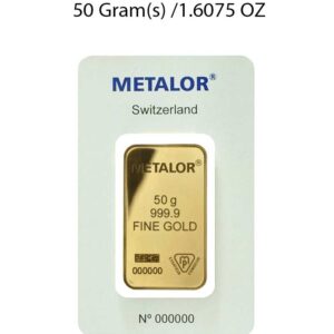 100g investment-grade gold bar from Metalor, manufactured to 999.9 fine gold. Supplied in secure packaging with full assay details, ideal for building or diversifying your physical gold portfolio.