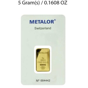 10g investment-grade gold bar from Metalor, manufactured to 999.9 fine gold. Supplied in secure packaging with full assay details, ideal for building or diversifying your physical gold portfolio.