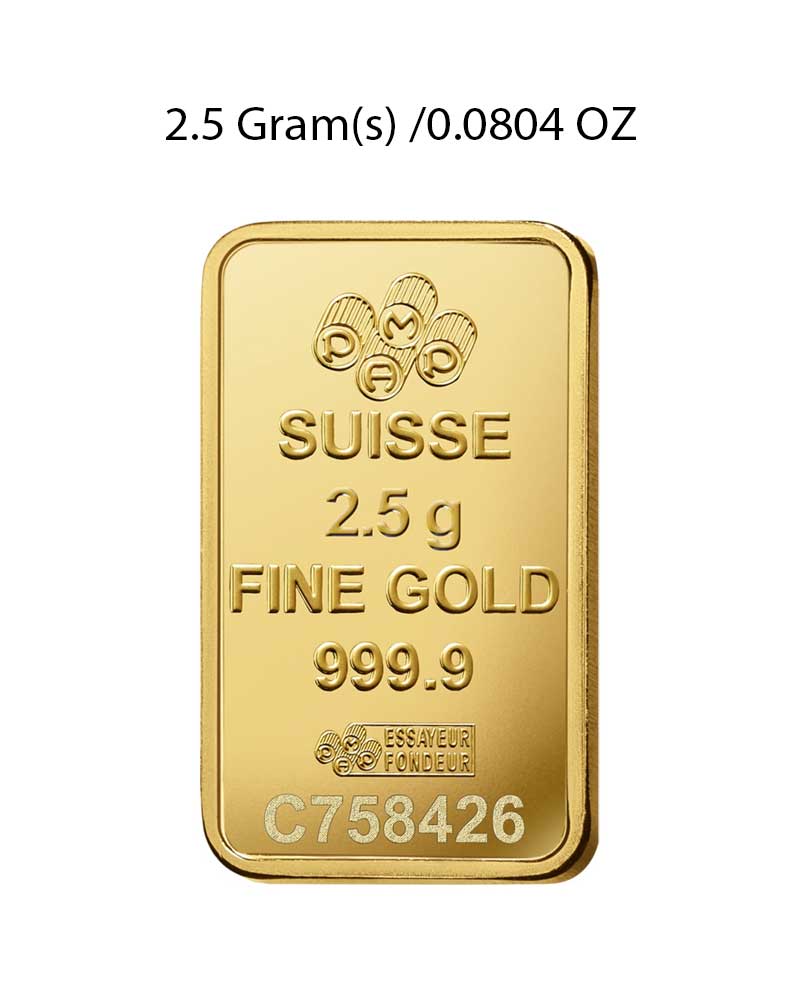 The PAMP 2.5g gold bar is a minted gold bar made from 999.9 fine 24-carat gold bullion. The new gold bar has a unique serial number with a built-in assay certificate verifying the investment gold content.