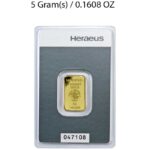 10g investment-grade gold bar from Heraeus, manufactured to 999.9 fine gold. Supplied in secure packaging with full assay details, ideal for building or diversifying your physical gold portfolio.