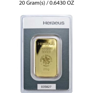 50g investment-grade gold bar from Heraeus, manufactured to 999.9 fine gold. Supplied in secure packaging with full assay details, ideal for building or diversifying your physical gold portfolio.
