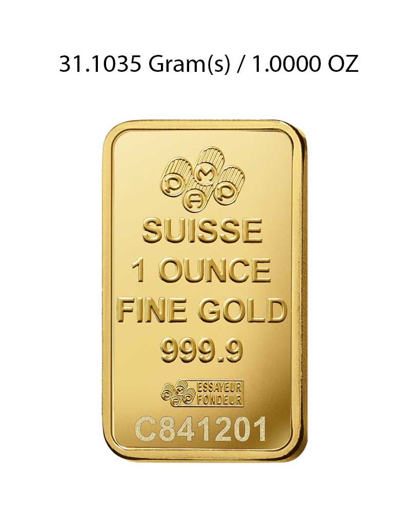 The PAMP Suisse 1oz gold bar, minted by one of Europe’s top refiners.