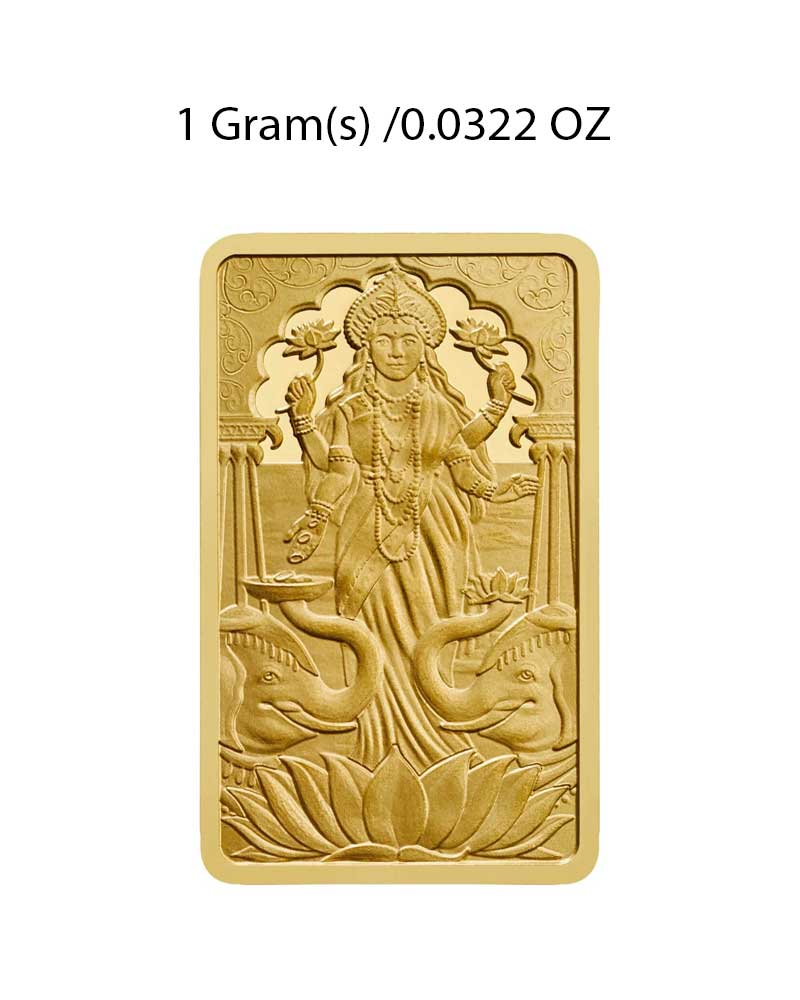 A brand-new, Lakshmi 1g gold bar. Produced with fine 24-carat gold and manufactured by The Royal Mint. The bars are supplied in tamper evident packaging and include a red assay card guaranteeing its weight and purity (999.9). A unique serial number is minted onto each bar.