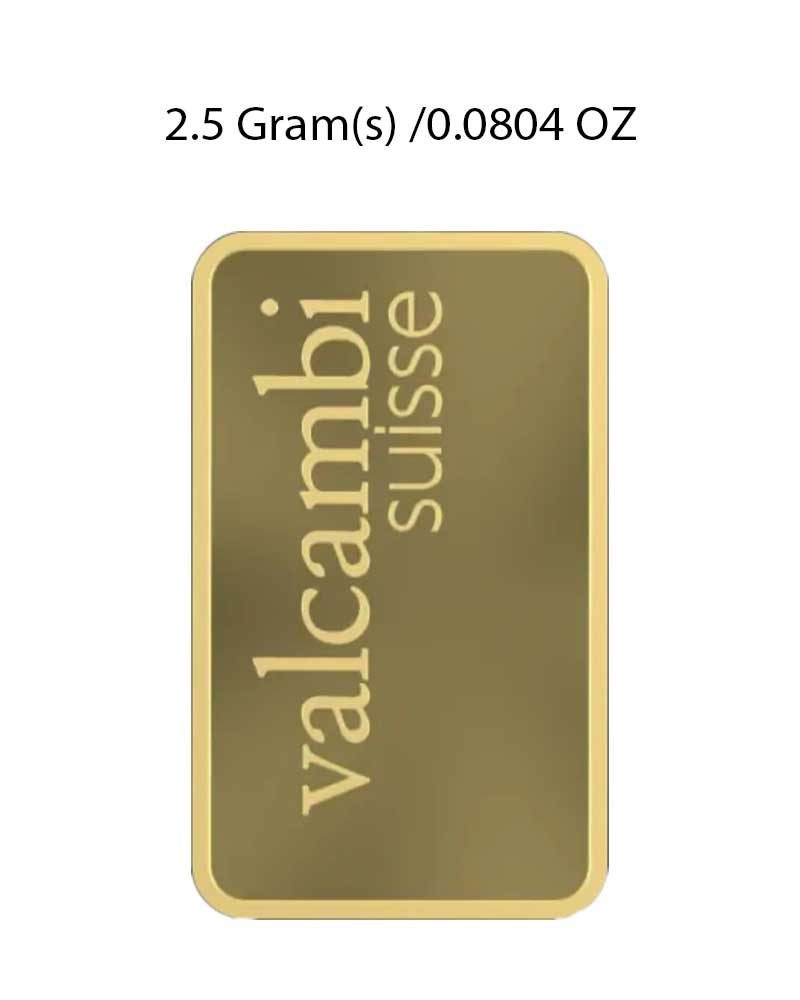 2.5g investment-grade gold bar from Valcambi, manufactured to 999.9 fine gold. Supplied in secure packaging with full assay details, ideal for building or diversifying your physical gold portfolio.